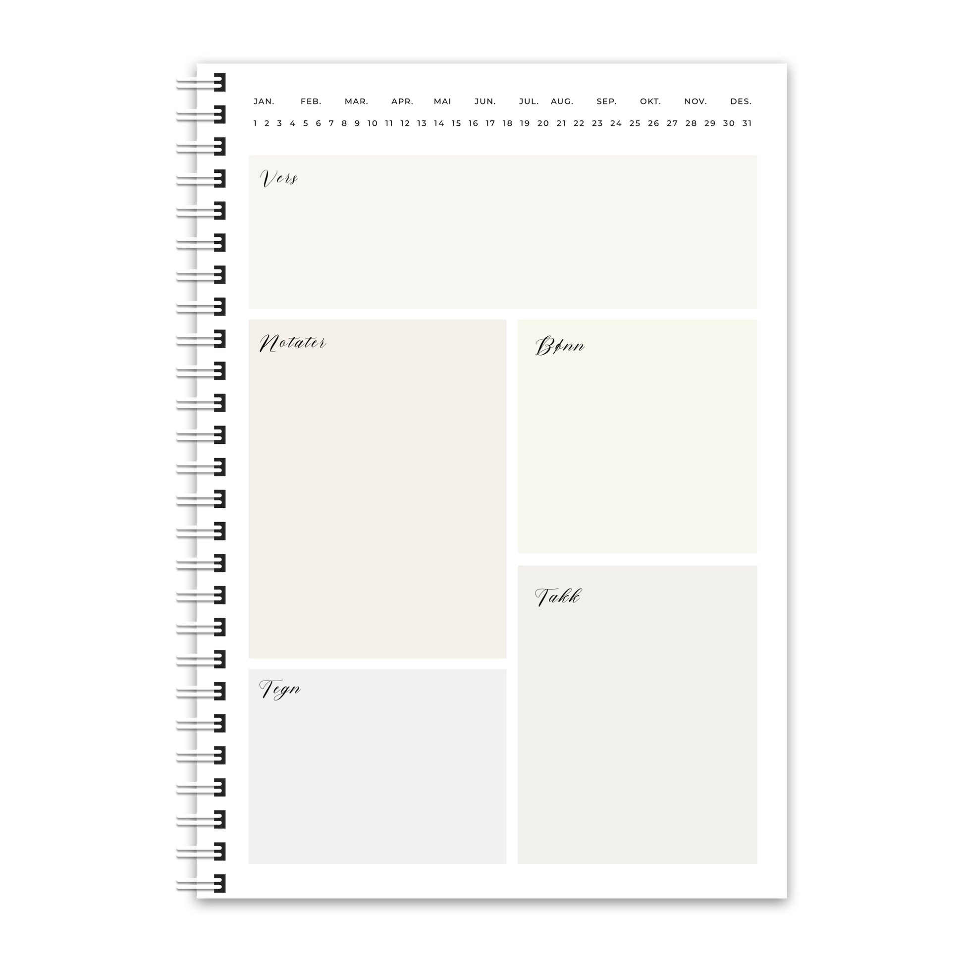✔ Spiralinnbinding – lett å bla i